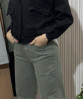 Giacchetto dal taglio sportivo con tasconi ed elastico in vita.