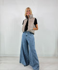Piumino imbottito dal taglio corto smanicato dalla vestibilità asciutta.