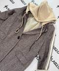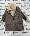 Blazer taglio over con cappuccio removibile perfetto per la stagione invernale con profili a contrasto