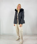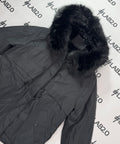 Giaccone con pelliccetta ecologica interna e cappuccio con pelliccietta removibile.