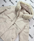 Giaccone con pelliccetta ecologica interna e cappuccio con pelliccietta removibile.