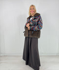 Ecopelliccia particolarissima con paillettes colorate che la rendono un capo unico. Misura unica con vestibilità fino alla 48