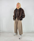 Ecopelliccia con zip, maniche e collo in maglia. Misura unica con vestibilità fino alla 46