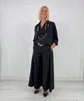 Comodo pantalone dal taglio svasato con tasche ed elastico in vita, perfetto per la stagione autunnale