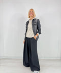 Camicia dal taglio sportivo in denim grigio Delavè arricchita da applicazioni scintillanti