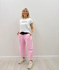 Jeans colorato dal fit ad “ovetto” taglia unica dalla consistenza perfetta per la primavera.