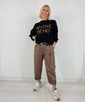 Pantalone dai fit ad “ovetto” taglia unica dalla consistenza perfetta per l’autunno-inverno in morbidissimo tessuto simil pelle