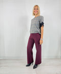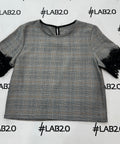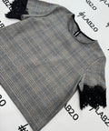 T-shirt in tessuto principe di Galles con maniche con lavorazione in pizzo a contrasto.