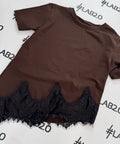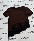 T-shirt taglia unica dalla vestibilità regolare con inserti in pizzo dal taglio trasversale