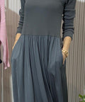 Abito effetto maglietta a costine con scollo tondo su gonna morbida con tasche.