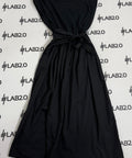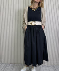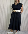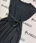 Abito  effetto maglietta a costine con scollo tondo  su gonna morbida con tasche.