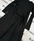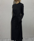 Abito girocollo con tasche, gonna morbida e fusciacca laterale
