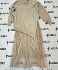 Abito composto da due pezzi, parte sotto abito con gonna in tulle e maglia dal taglio trasversale sopra