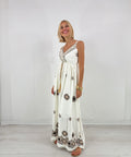 Abito lungo scollo ad incrocio, con balze  perfetto per l'estate.