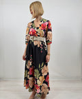 Abito scolla ad incrocio ed elastico in vita fantasia.