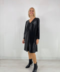 Abito scollo a V taglio over completamente paillettato.