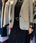 Blazer dal taglio morbido in pied de poule nero, grigio e panna