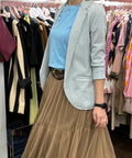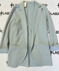 Blazer  fantasia sui toni del celeste  perfetto per  qualsiasi occasione. Misura unica, dalla vestibilità asciutta.