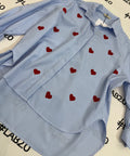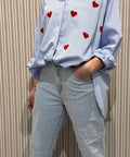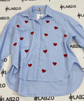 Camicia taglia unica righe azzurre con cuori rossi a contrasto dal taglio over