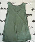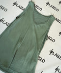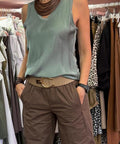 Canottiera  in viscosa con scollo a V e taglio  morbido e tessuto dall’effetto lucido sulla parte frontale