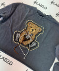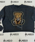 Felpa taglia unica con taglio a vivo, resa unica dalla patch bear impreziosita da tanti dettagli