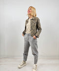 Giacchetto denim leopard elasticizzato, vestibilità attillata