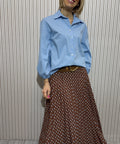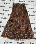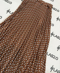 Gonna plissettata marrone con pois celesti, taglia unica, veste 42/46.