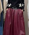 Gonna taglia unica dalla vestibilità ampia (dalla 44 alla 48) in simil pelle dalla consistenza perfetta per l’autunno-inverno.