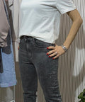 Jeans modello asciutto leggermente elasticizzato arricchito da delicate applicazioni scintillanti