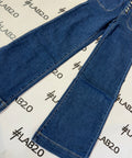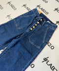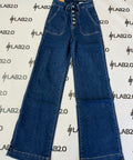 Jeans palazzo leggermente scampanato elasticizzato a vita alta con bottoni a vista