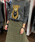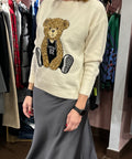 Caldo maglione dal tatto morbido adatto per il periodo invernale, con patch Bear arricchita da strass e perle per un look originale