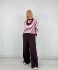 Maglione morbido a righe rosa e bordeaux perfetto per l’inverno