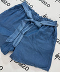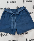 Comodo pantaloncino corto in tessuto freschissimo effetto denim con tasche ed elastico in vita.