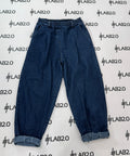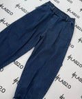 Pantalone in denim taglio “mom” con tasche ed elastico in vita