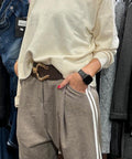 Comodo pantalone in tessuto effetto tweed  con tasche ed elastico in vita e cavallo basso