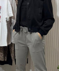 Comodo pantalone con tasche ed elastico in vita, perfetto per la stagione primaverile .