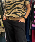 Comodo pantalone in tessuto punto Milano con tasche ed elastico in vita e taglio trasversale alla caviglia