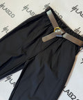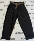 Comodo pantalone con tasche a filo, elastico in vita e cintura.